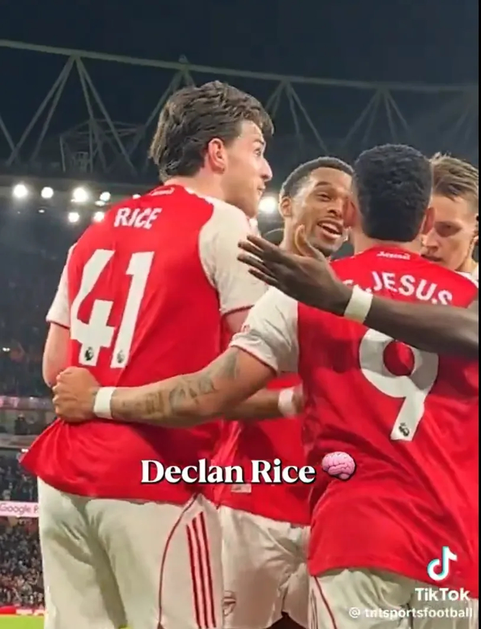 从视频看,其实也算不上很过分,有些媒体炒作赖斯“恼羞成怒”甚至“失控”,但实际上没有那么夸张,但赖斯确实和队友的情绪相比显得格格不入,当时萨卡、廷贝尔、因卡皮耶、厄德高等很多人都在开心庆祝,但赖斯上来板着脸对队友进行了一番说教,热苏斯后来还在安抚他。